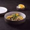 チャコールグレーの石のようなマットな素地と、フラットデザインがモダンな浅鉢