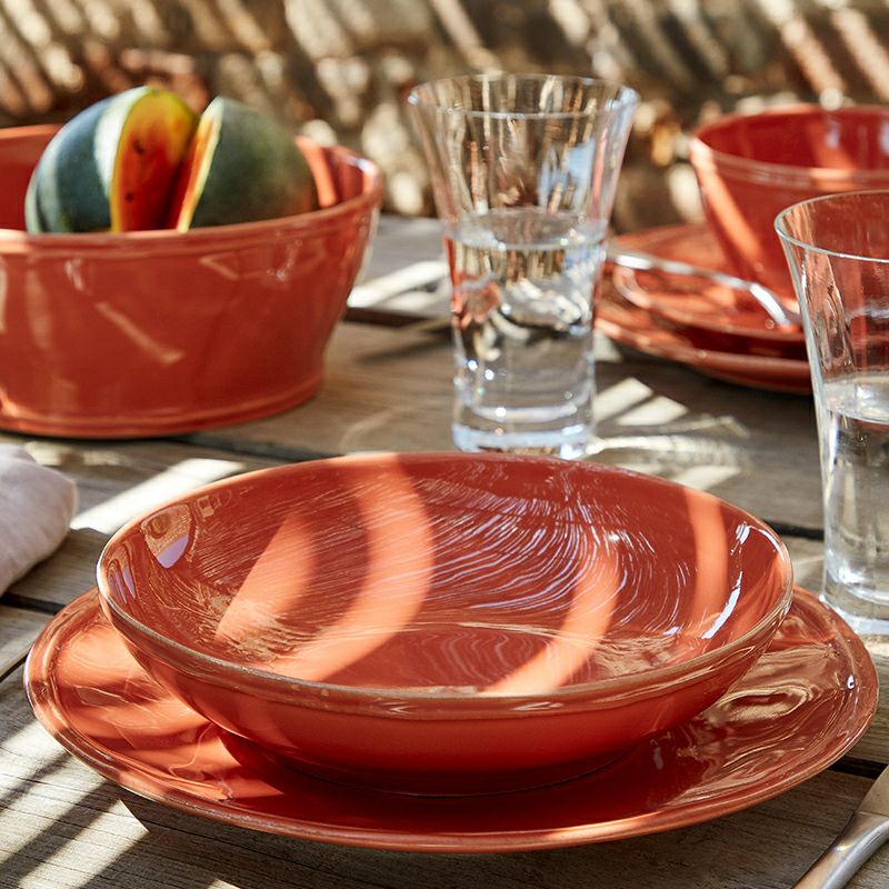 ヨーロッパの片田舎のあたたかい家族団らんの食卓をイメージしてデザインされたフォンタナシリーズ。落ち着いた深みのある色味と素朴なデザイン、大きめサイズのゆったりした雰囲気が、主張しすぎず落ち着いたたたずまい。 丸みを帯びた温かみのあるシルエットにぽってりとした厚めの釉薬、エッジにラインが入ったシンプルで素朴なデザインがどんな食器にも程よくマッチします。普段使いに長く活躍しそうなしみじみした味わいが魅力のシリーズです。