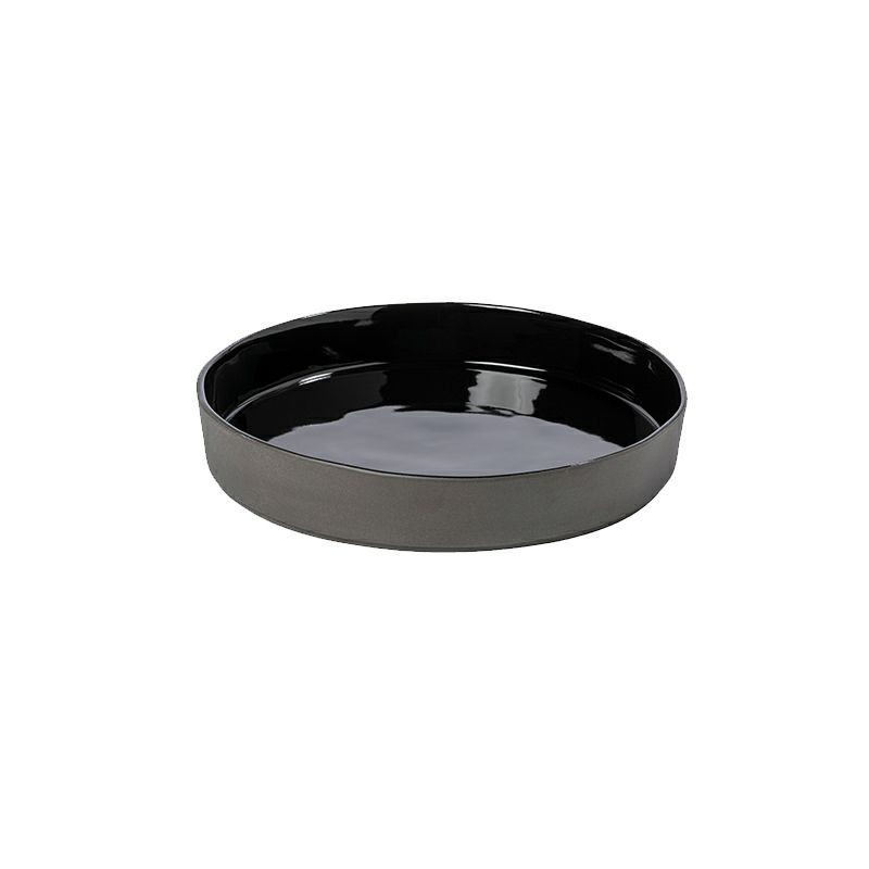 黒っぽいチャコールグレーの素地と、エナメルのような艶のあ るブラックの釉薬のコントラストが印象的。すっきりとしたシルエットがモダンなスープ&パスタプレート