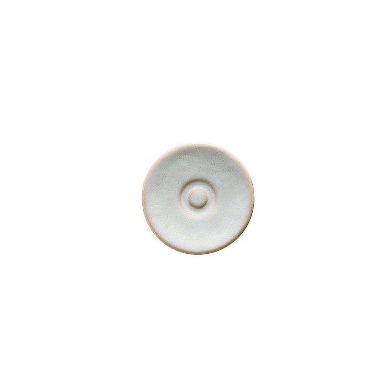 平らなボタンのような形が素朴でかわいいソーサーです。 ぽってりとかかった釉薬、うっすら透ける温かみのある土の色が、やさしい印象です。別売りのカップと合わせてお使いください。