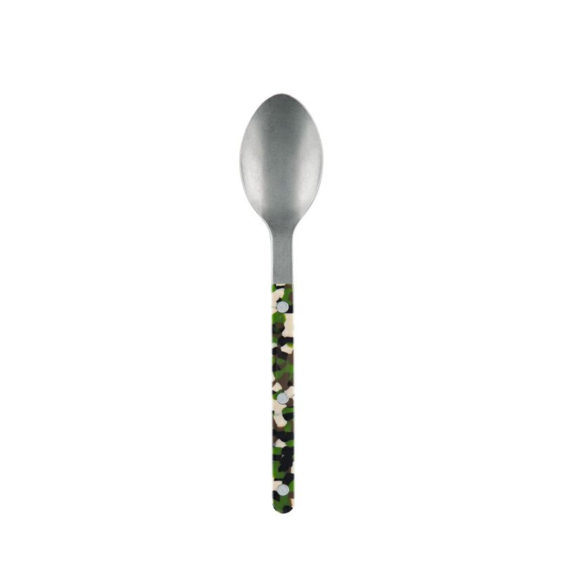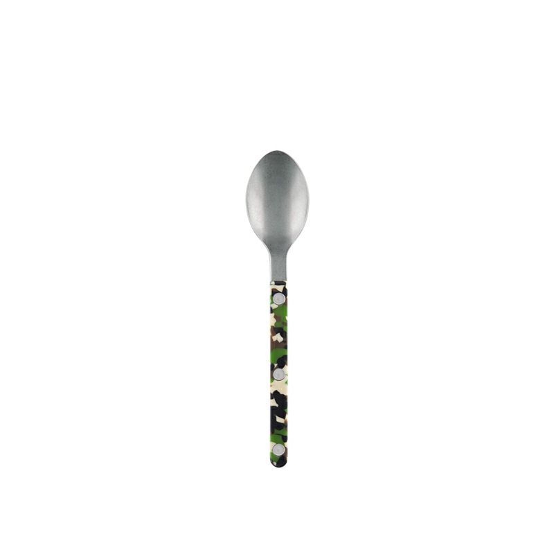 フランス・パリ発のカトラリーブランド SABRE(サーブル)のカモフラージュシリーズ。 シンプルで硬質なラインのステンレスカトラリーを、迷彩柄のアクリル板でサンドイッチしています。アクリル板のツヤ感・透明感・色の深みが、迷彩柄のいかつさをマイルドに和らげ、洗練された都会的な印象に。屋外のシーンはもちろん、屋内テーブルコーディナートのスパイス役としても活躍しそうです。お手持ちの食器やテーブル小物の雰囲気を新しくしてくれそうなカトラリーです。