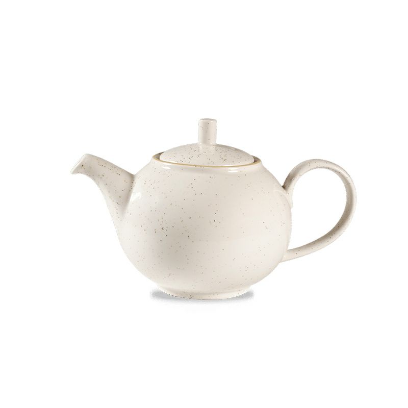 カーブがゆったりとした持ち手、本体ボディのコロンとした形がかわいい、ストーンキャストのティーポット。