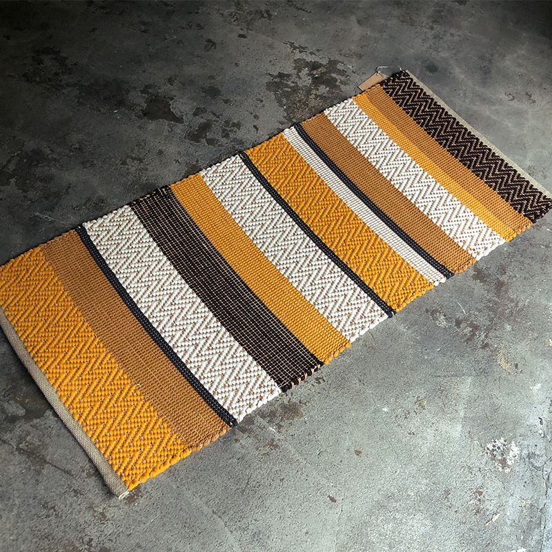 少しくすんだ山吹色をキーカラーに、からし色・白・ブラックのはっきりとしたコントラストに織り目が映える、オリエンタルな雰囲気も漂うデザインです。