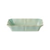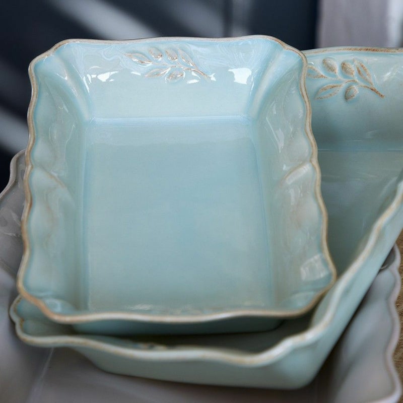 オリーブ柄がアクセント。お皿のフチが、ロマンチックでやさしい曲線を描くエレガントで温かい印象のレクタングルベイカー。