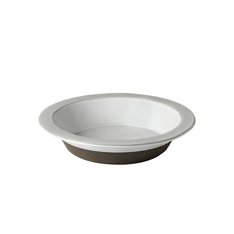 シンプルなデザインと、白い釉薬からうっすら透ける黒に近い濃いチャコールグレーの素地の色がどこかノスタルジックで、使い込まれたブロカントの食器のような印象です。