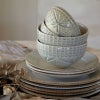 一目惚れをして購入しました。 柄がどことなくパイナップルのようでハワイアンぽくも見えたもので…。 写真通りの色味で、ひと味違うこの青みがかったグレーが食卓のいいアクセントになっています。 いかにもお茶碗、というのをやめたくて『少し大きいけれどお茶碗としても使いたい!』と思い購入したのですが、 副菜を一品盛ったりヨーグルトやフルーツを盛ったりと、当初の目的以外にも大活躍してくれております。 ※お茶碗として手に持つときにはそれなりの重さを感じます。 また、表面は柄の凸凹がありますがザラザラしているわけではなく、滑らかで引っかかることもありません。 梱包も丁寧にしていただき、届いたときから気持ちよかったので、またお願いしたいと思います。 購入してよかったと思いますし、これから長く楽しみます。