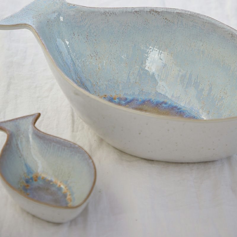 大西洋をモチーフにしたこの食器は、真珠貝のような不思議な色の釉薬が深みを添えて、他の食器ともあわせやすい風合い。