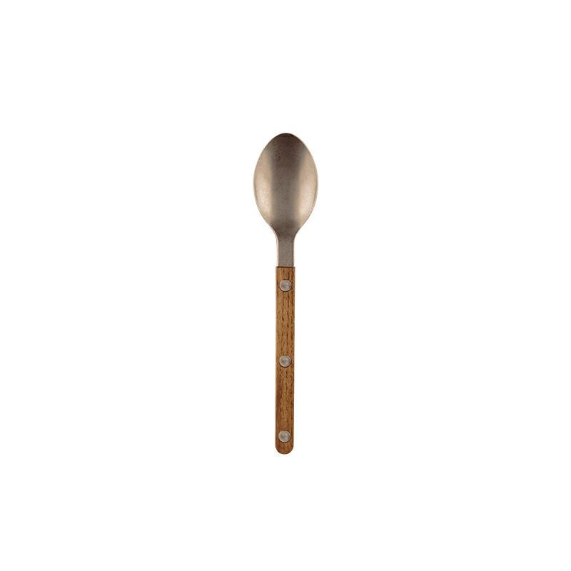 金属部分はビンテージマット加工されたステンレスで、少しくすんだやわらかい光を放ち、 カトラリー全体のスリムなフォルムとあわさって、かっちり決まりすぎない大人のカジュアルさを演出しています。