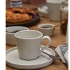 すっきりとしたシルエットと、コースターのように平らなソーサーが面白いティーカップ&ソーサー。