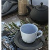 シンプルなデザインと、素地そのままの濃いチャコールグレーの色、白い釉薬からうっすら透ける黒に近い素地の色が、全体的に端正な印象です。