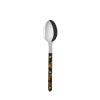 柄の部分はステンレス製のカトラリー本体を、べっ甲柄のアクリル樹脂の板でサンドイッチし、3つのリベットでボタンのように留められています。
