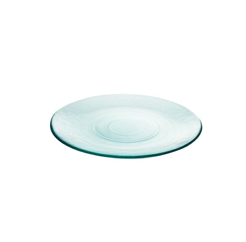 再生ガラスの柔らかい色味とシンプルな形。メイン皿にぴったりのガラスプレート。