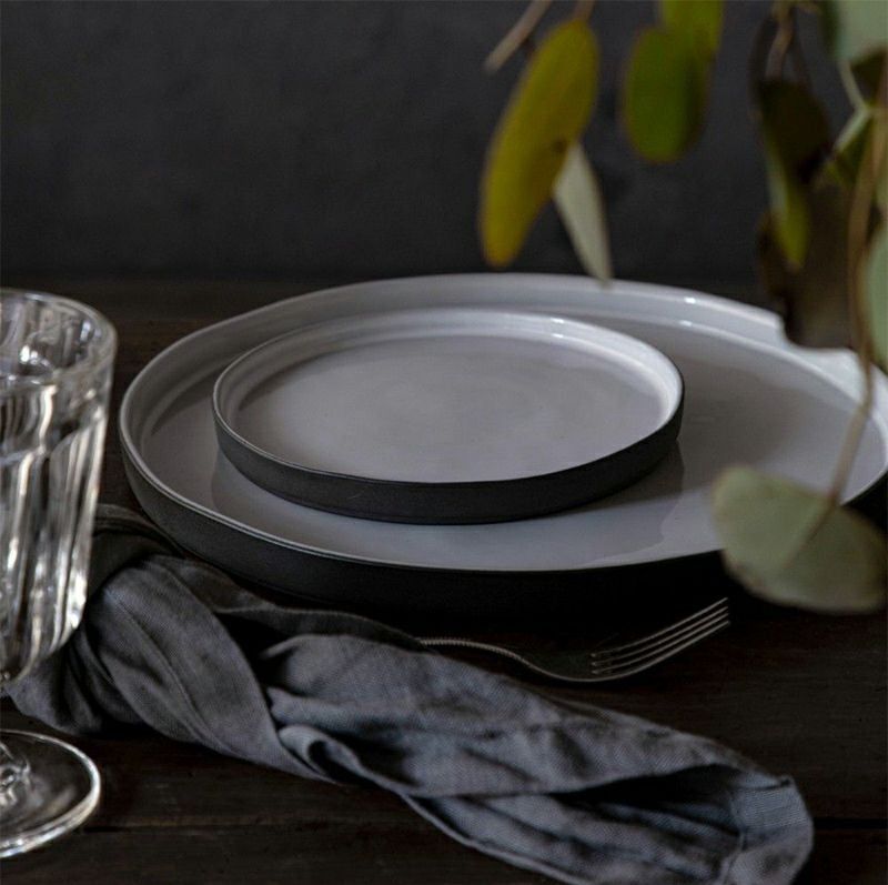 黒っぽい素地と白い釉薬のコントラスト、すっきりとしたシルエットがモダンなブレッドプレート