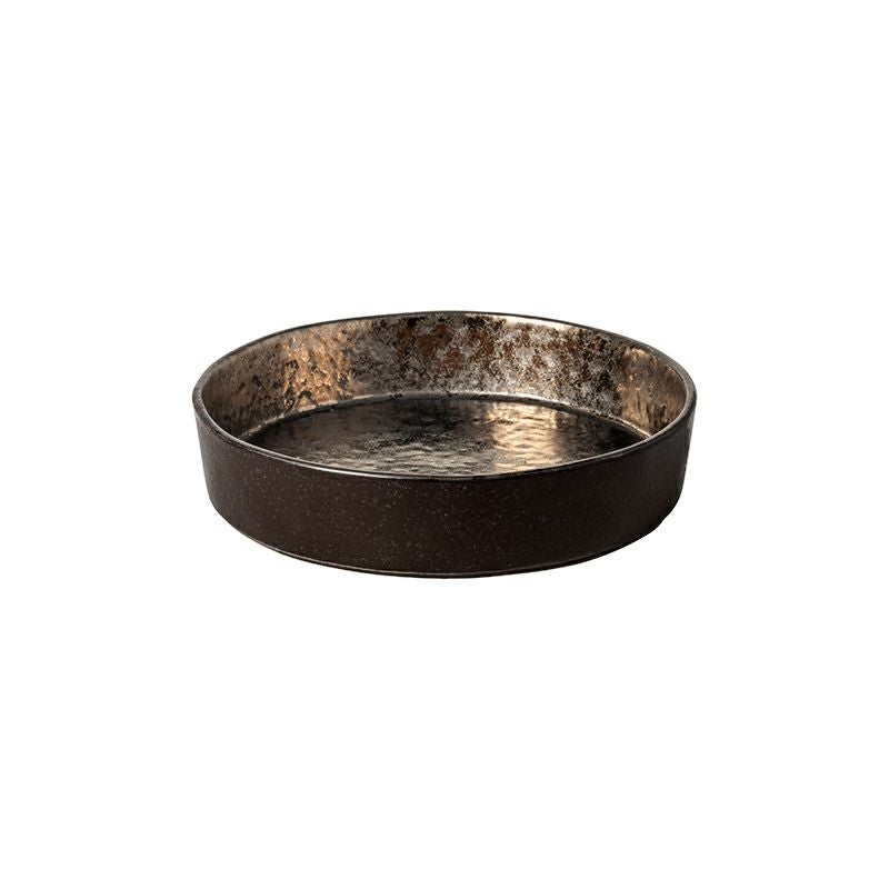 ほんもののようなメタリックな仕上げが個性的。トレイのようなシンプルな形のモダンなパスタプレート