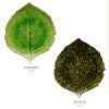 葉脈まで入って、本物の葉っぱのよう。 葉っぱのみずみずしいかんじが、ガラス質の釉薬で伝わってきます。