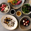 大きさの違うStonecastのお皿を色違いで揃えて、重ね使いも楽しいですね。