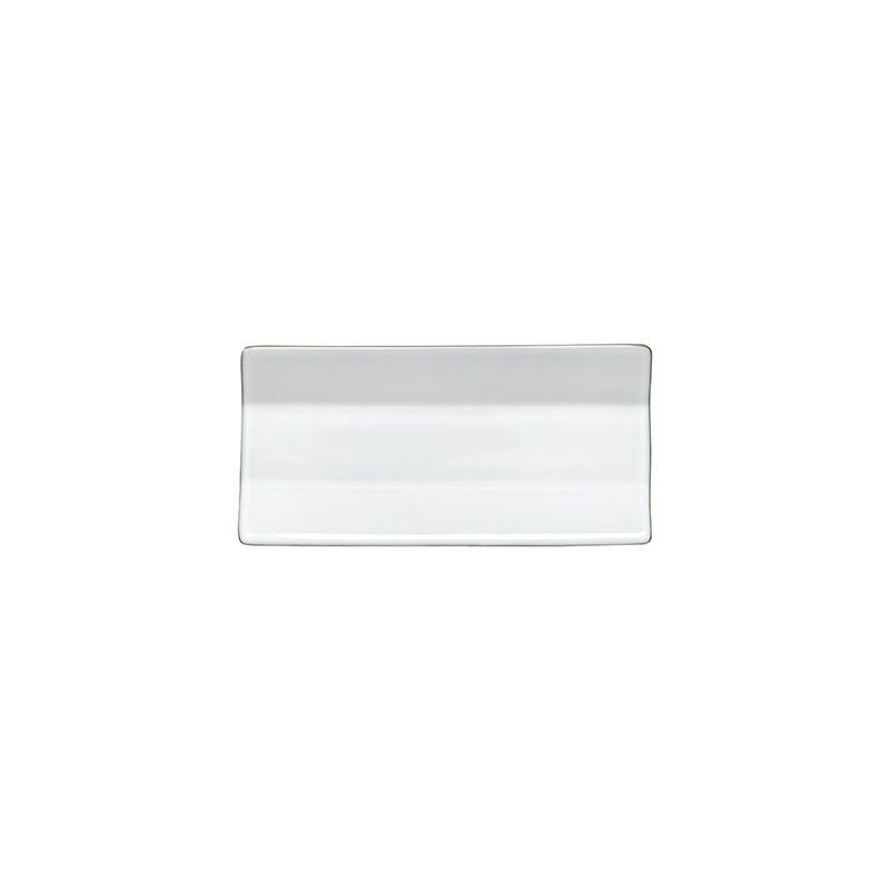 白い釉薬と黒土の素地の質感と質感の違いを活かした都会的な雰囲気の細身のレクタングルプレート。