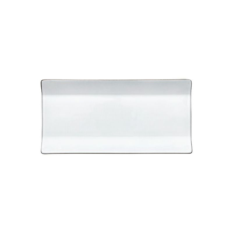 白い釉薬と黒土の素地の質感と質感の違いを活かした都会的な雰囲気のレクタングルプレート。