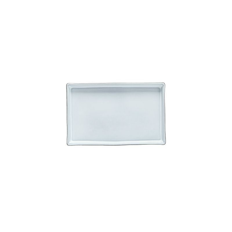黒っぽい素地と白い釉薬のコントラスト、すっきりとしたシルエットがモダンなレクタングルプレート