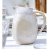 まるで鳥のおなかのようにふっくらとしたやわらかいボディのライン、注ぎ口や取っ手の部分のやわらかいカーブなどが、見ているだけで思わずしあわせな気持ちになるピッチャーです。