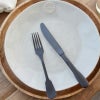 アンティーク風のマットなブラックカラーと、モダンなデザインが面白いカトラリーシリーズ。