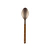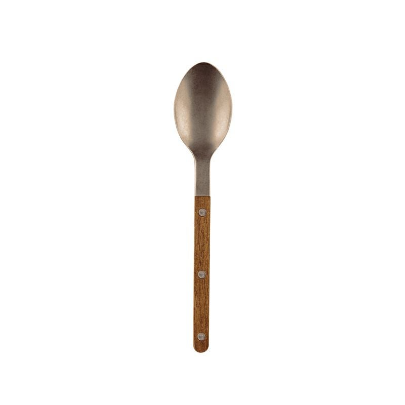 金属部分はビンテージマット加工されたステンレスで、少しくすんだやわらかい光を放ち、 カトラリー全体のスリムなフォルムとあわさって、かっちり決まりすぎない大人のカジュアルさを演出しています。