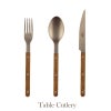 金属部分はビンテージマット加工されたステンレスで、少しくすんだやわらかい光を放ち、 カトラリー全体のスリムなフォルムとあわさって、かっちり決まりすぎない大人のカジュアルさを演出しています。