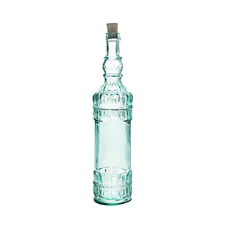 優美なシルエットと縄目モチーフの組み合わせが楽しい。コルク蓋つきガラスボトル