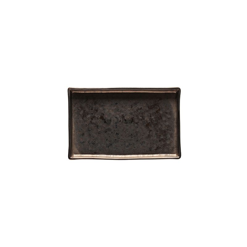 内側のメタリックな質感と手で作ったようなぬくもりのある形が面白い角皿です。